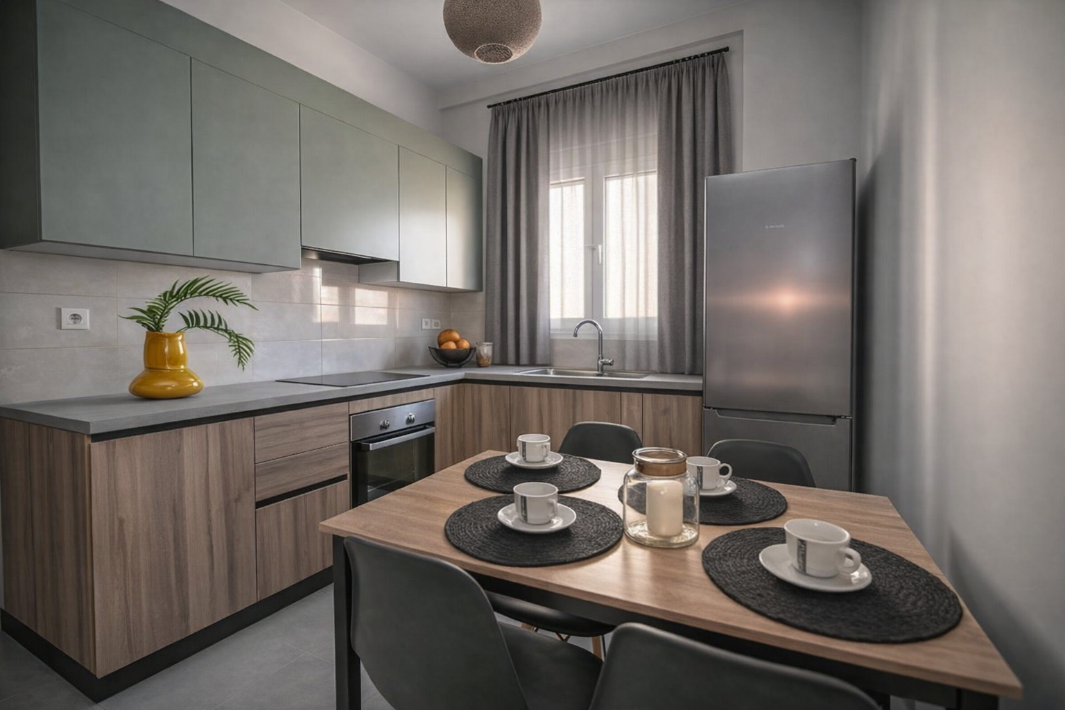 Our philosophy is simple: hospitality should feel natural. We focus on creating spaces that are clean, well-organized, and thoughtfully prepared, so you can relax from the first moment. Each apartment combines modern design with a warm, welcoming atmosphere, reflecting the essence of Greek living — simple, comfortable, and authentic.